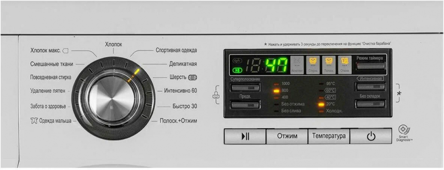 | Минусы: | Нет ThinQ, только Smart Diagnosis, многие режимы стирки очень долгие по 2,5 и 3,5 часа. |