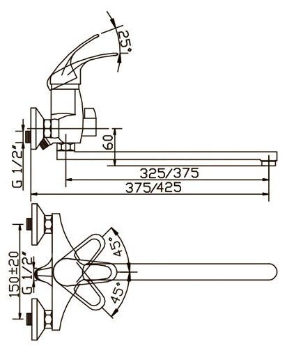 Смеситель ванна/душ 40-L40/K JAMAICA, хром, однорычажный, d-40,L-35 см ARGO