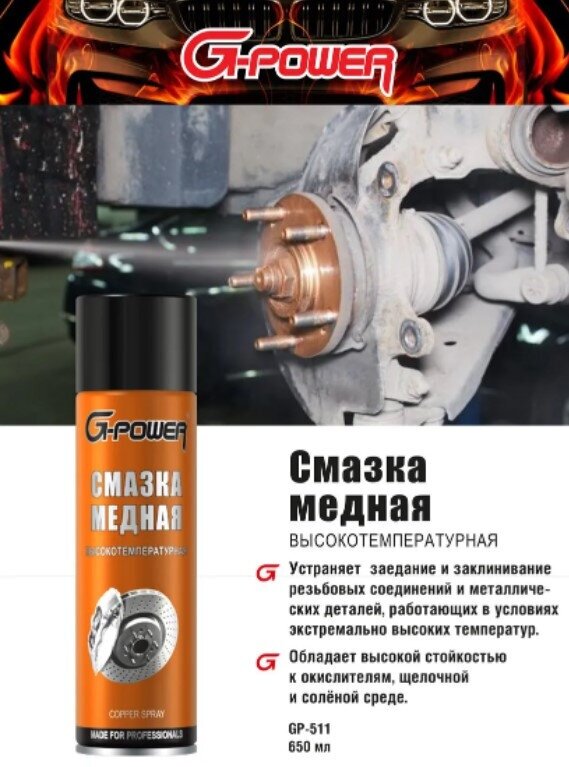 Смазка gpower высокотемпературная медная 650 мл g-power gp-511