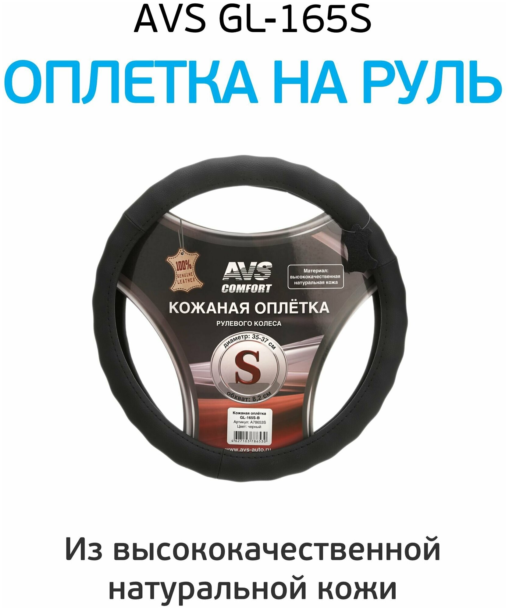 Оплетка руля AVS GL-165 натуральная кожа, черная