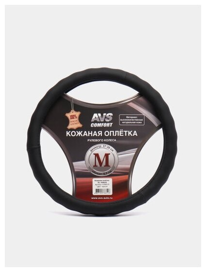 Оплётка руля AVS Comfort натуральная кожа гладкая чёрная M