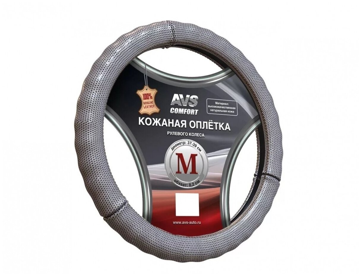 Оплётка руля AVS Comfort натуральная кожа перфорированная серая M