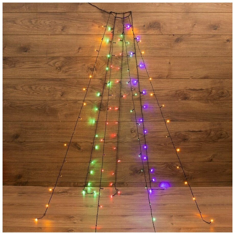Елочная гирлянда с кольцом NEON-NIGHT 7 нитей по 1,5 метра, 8 режимов, 105 разноцветных светодиодов, тёмно-зеленый провод