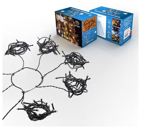 | Минусы: | Все таки цветные гирлянды интереснее, да и на высокую (2,7 м) елочку длины гирлянд маловато. |