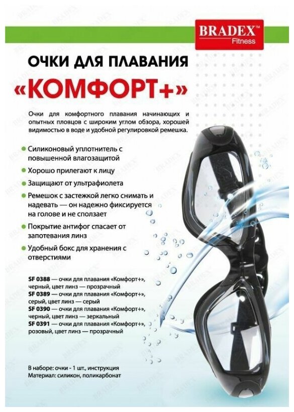Ниже Вы можете прочитать отзывы на Очки для плавания BRADEX Комфорт, серые, цвет линзы - серый SF 0386, ознакомится с подробными характеристиками, посмотреть интересные обзоры и фотографии на Очки для плавания BRADEX Комфорт, серые, цвет линзы - серый SF 0386.