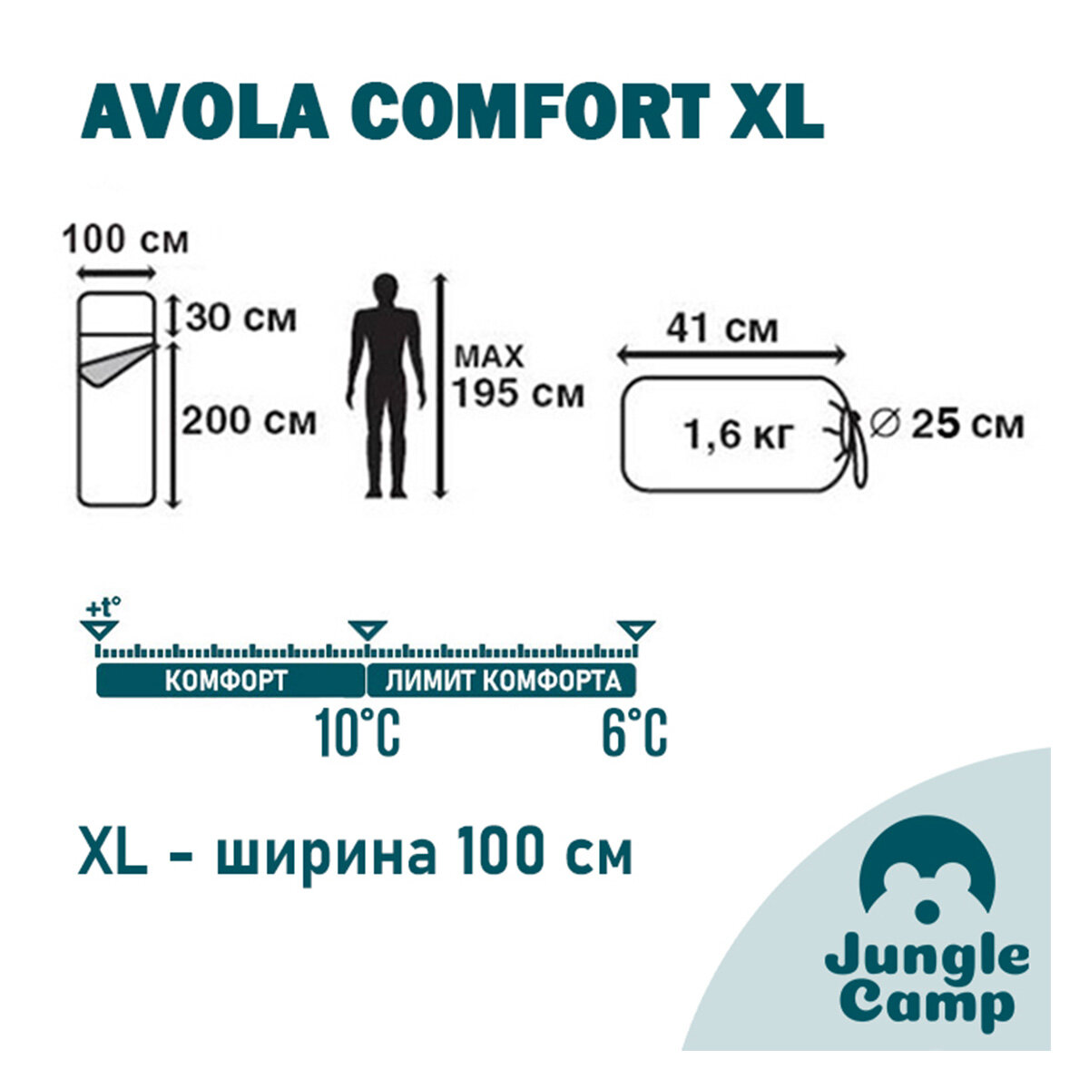 Спальный мешок Jungle Camp Avola Comfort XL, широкий, левая молния, цвет: синий интересное: