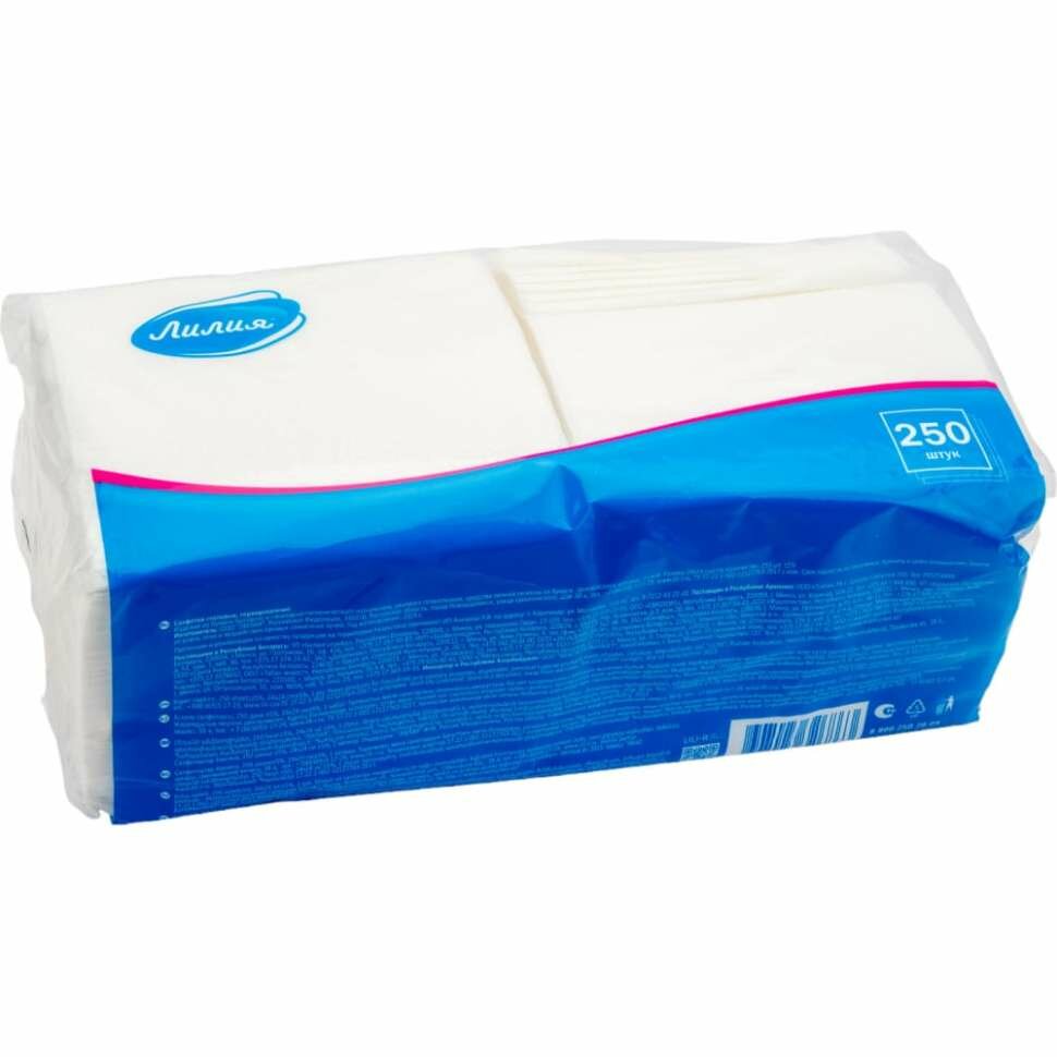 Салфетки бумажные лилия Лилия, белые, 24х24 см, 1 слой, 250 шт/уп