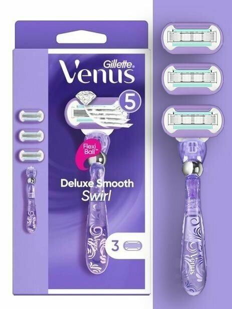 Бритвенный станок Gillette Venus Swirl Deluxe smooth , с 3 сменными лезвиями в комплекте интересное: