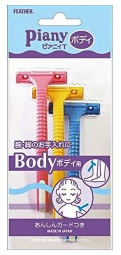 Feather Piany for Body Бритвенный станок, 3 шт., с 3 сменными лезвиями в комплекте