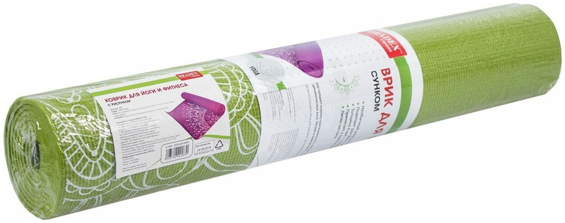 Коврик для йоги и фитнеса с рисунком Грин, Bradex (товары для спорта и отдыха, 173 х 61 х 0,4, SF 0404)