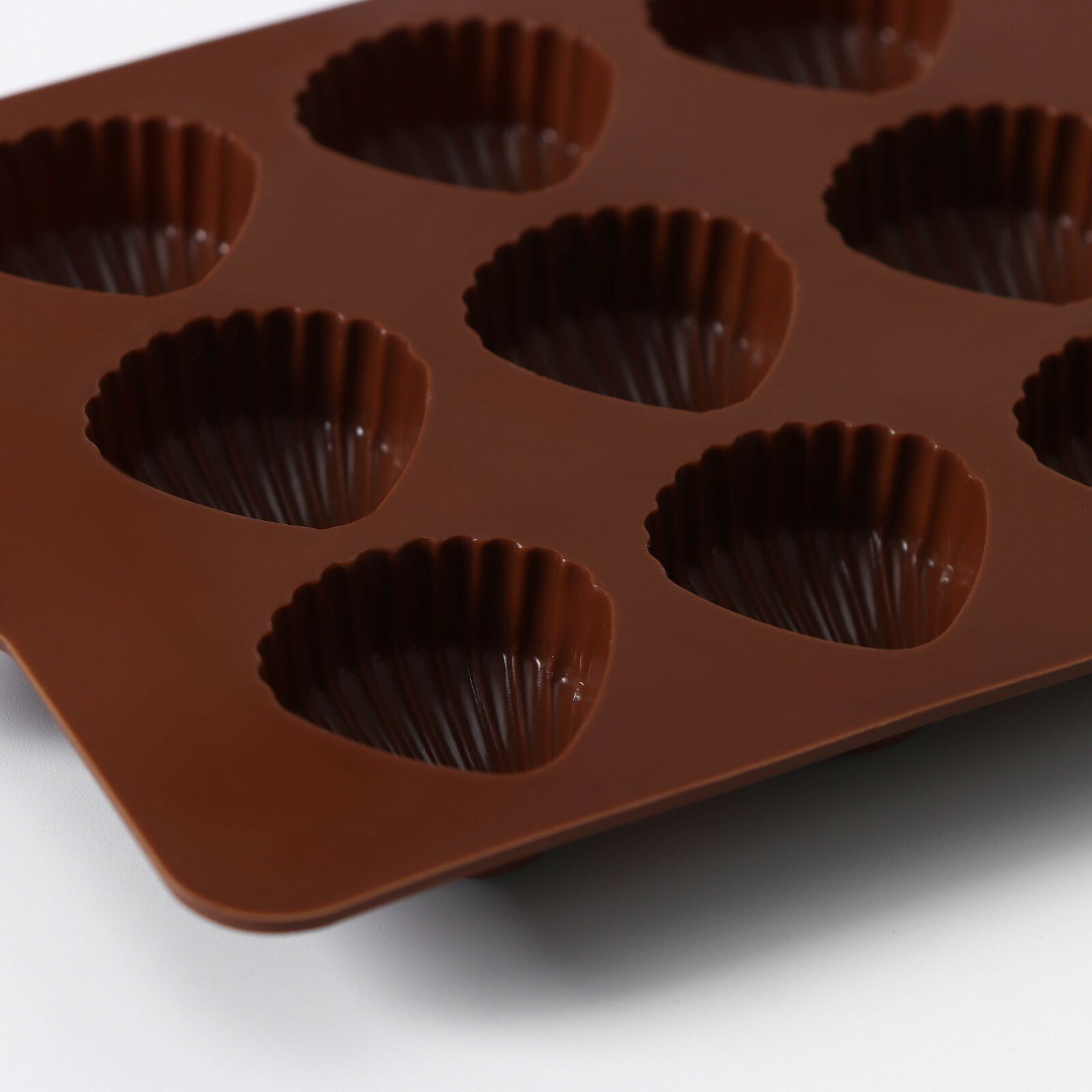 Форма для шоколада Доляна «Ракушки», силикон, 22×10,5×1 см, 15 ячеек (2,7×3,4 см), цвет коричневый