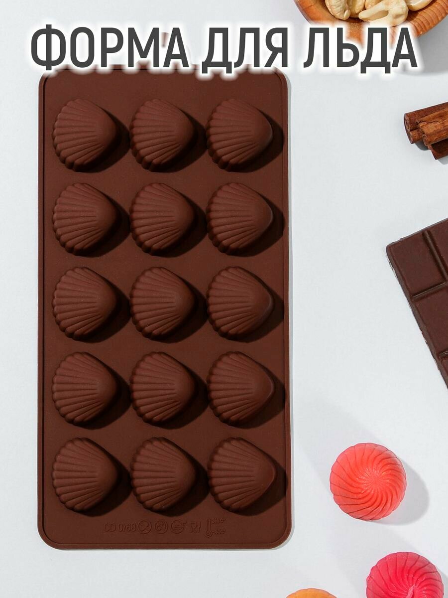 Форма для шоколада Доляна «Ракушки», силикон, 20,5×10,5 см, 15 ячеек (2,7×2,4 см), цвет коричневый