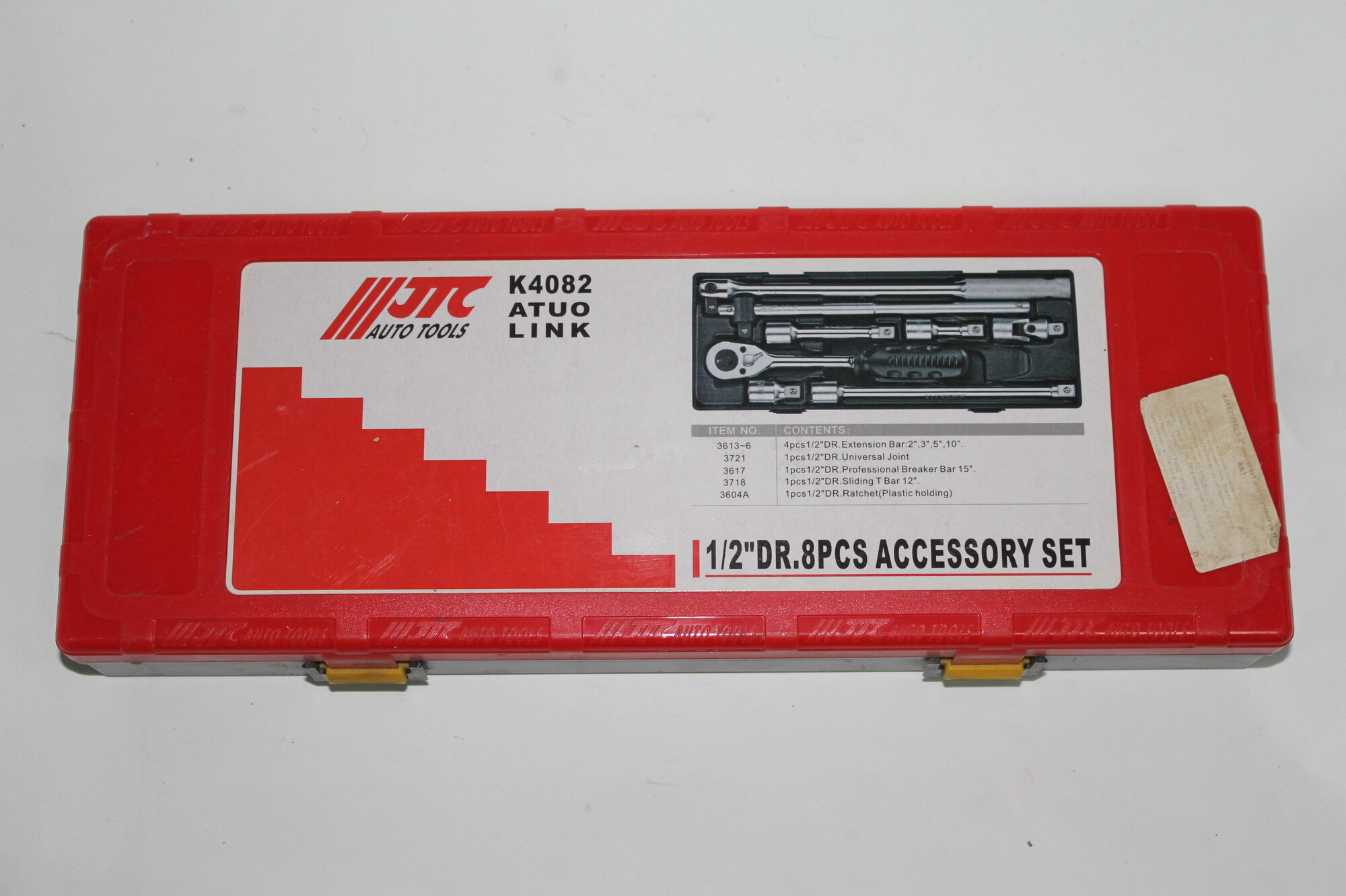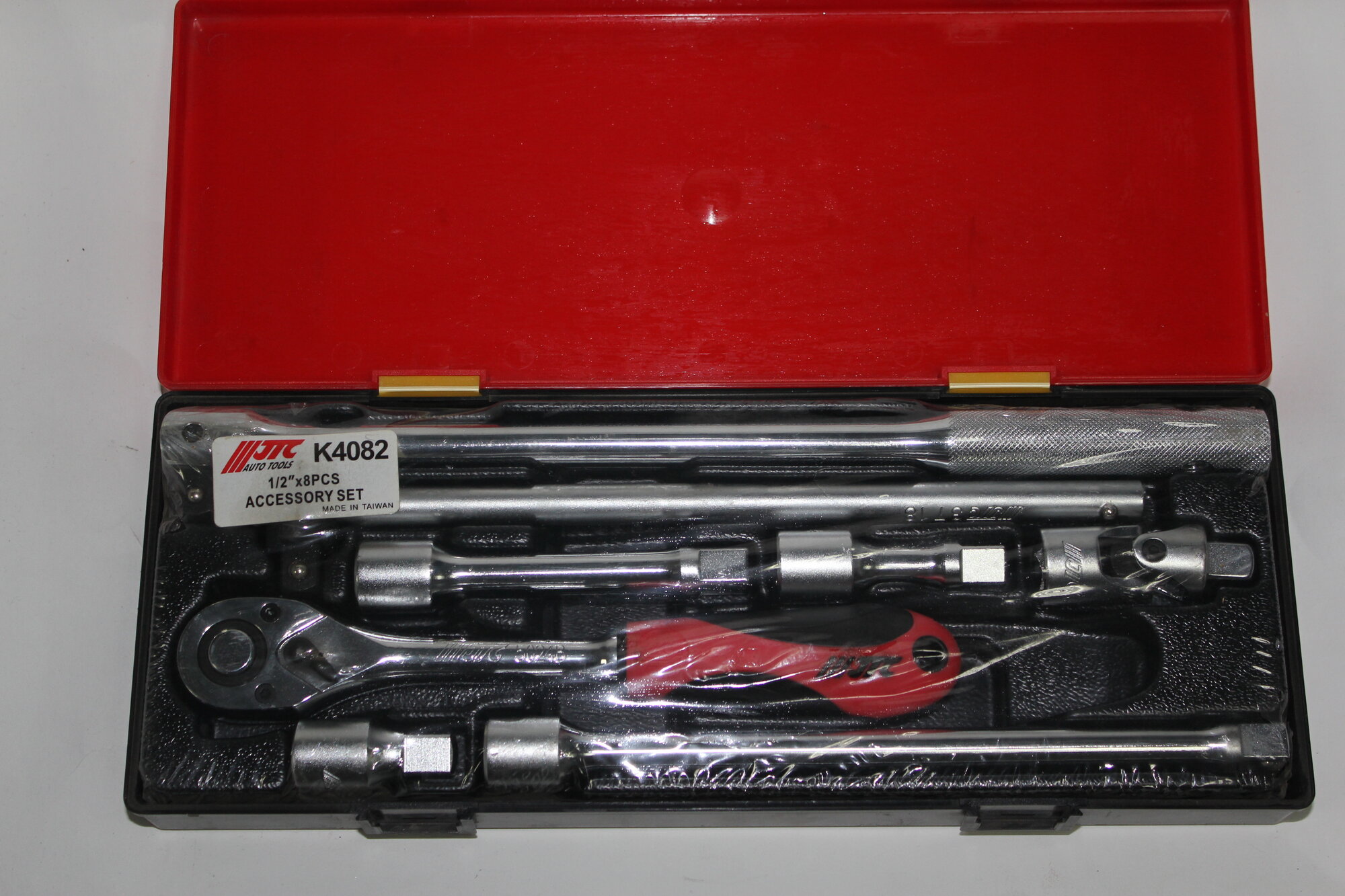 Набор инструментов 8 предметов слесарно-монтажный 1/2" (ключ трещот.,ворот.,удлинит.) в кейсе, JTC JTC-K4082 (1 шт.)