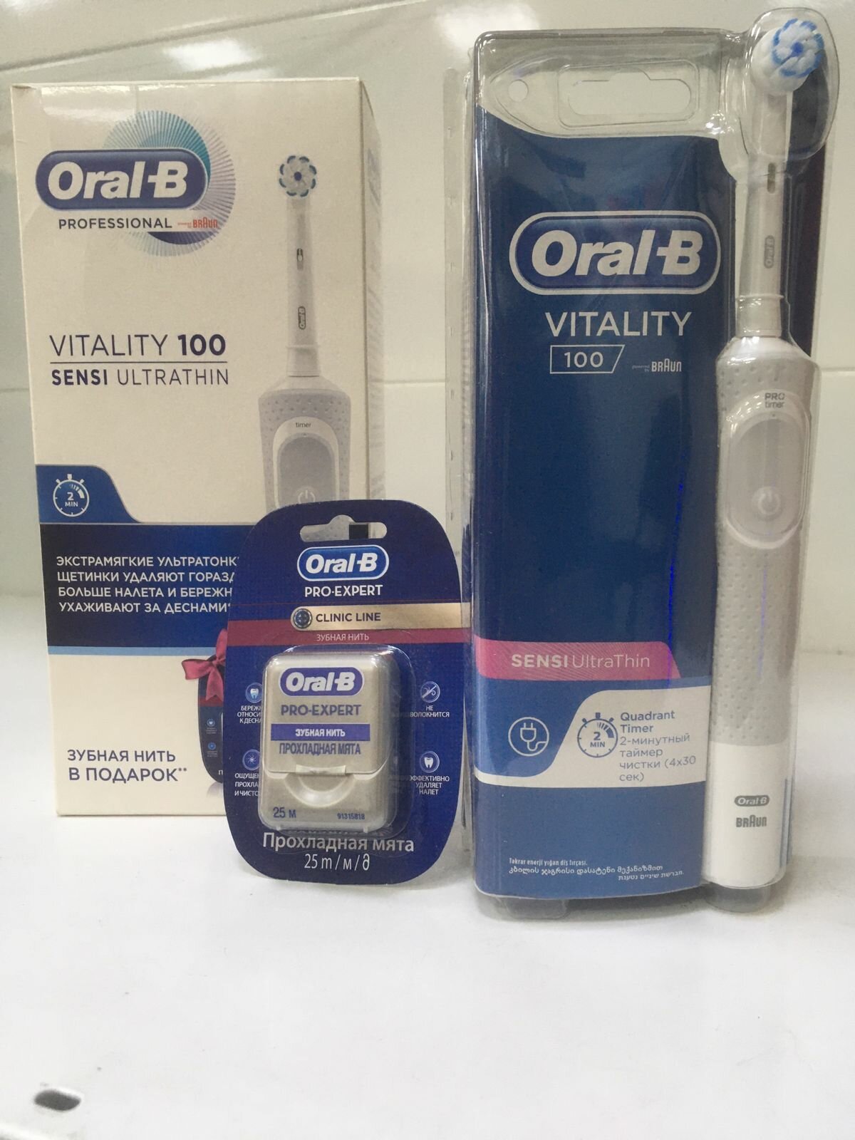 Электрическая зубная щетка Oral-B Vitality 100 Sensi Ultra Thin, белый/серый интересное: