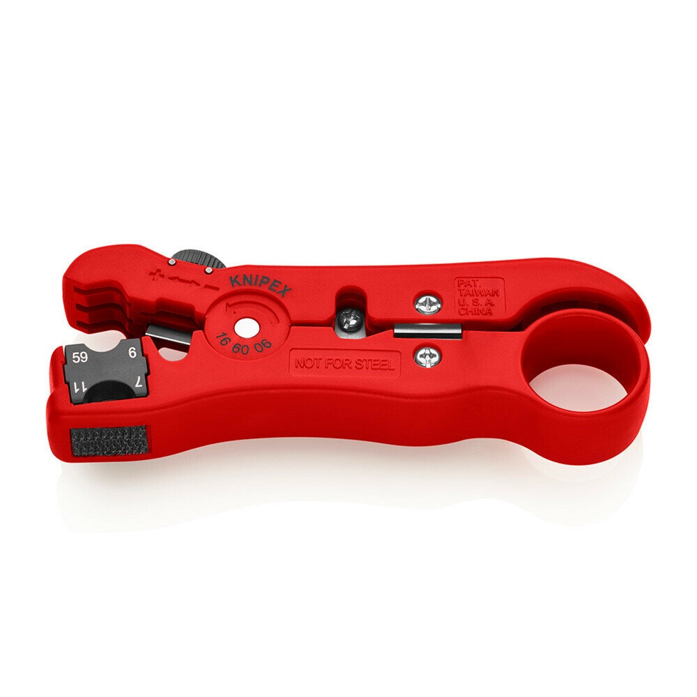 Стриппер KNIPEX для коаксиальных RG 59/6/7/11, дата-кабелей, телефонных плоских кабелей 4P/6P/8P, длина 125 мм KN-166006SB