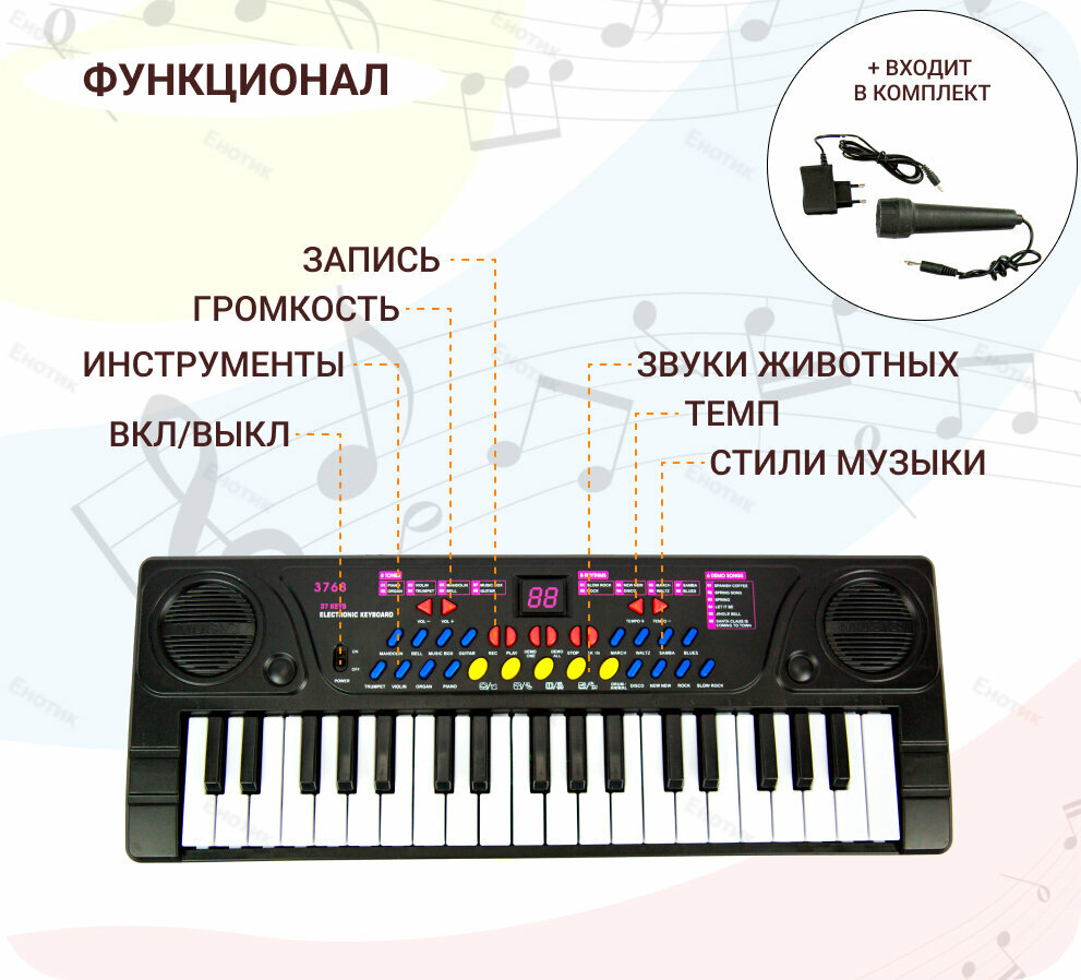Синтезатор детский. Пианино детское работает от сети и батареек, с микрофоном в/к 50*18*6,5см интересное: