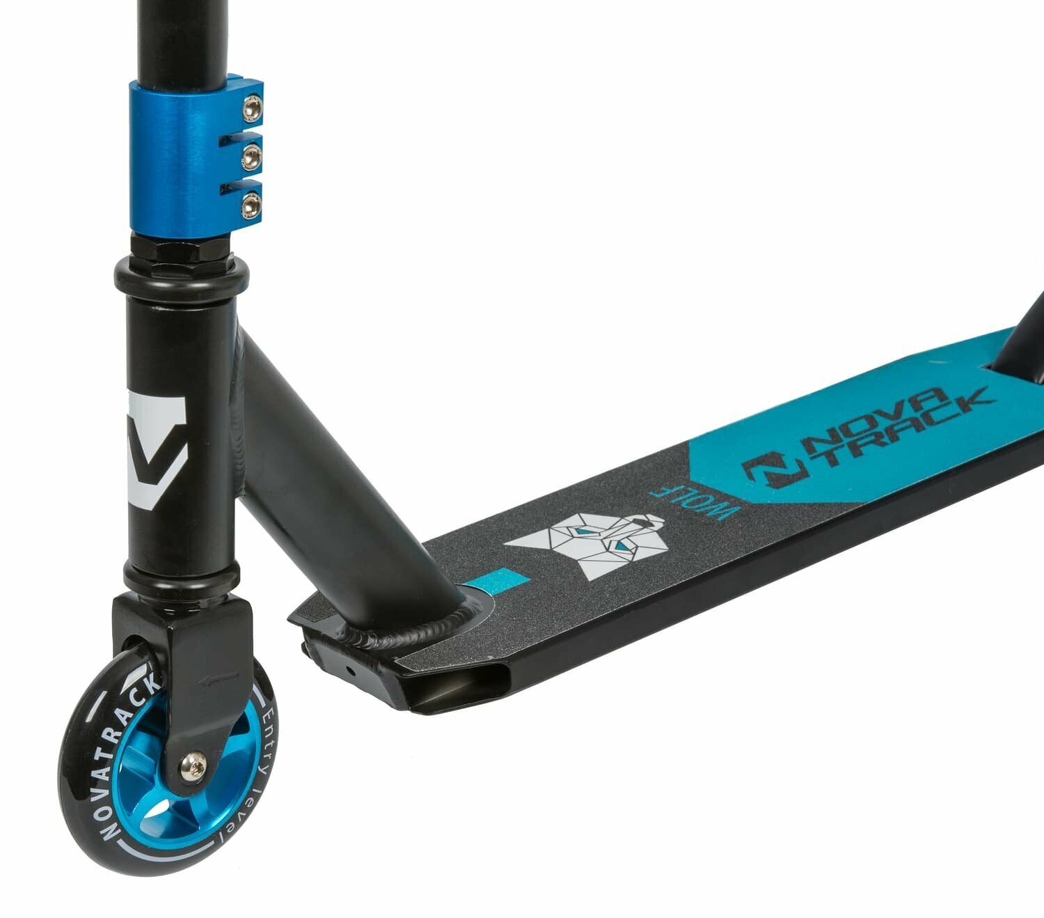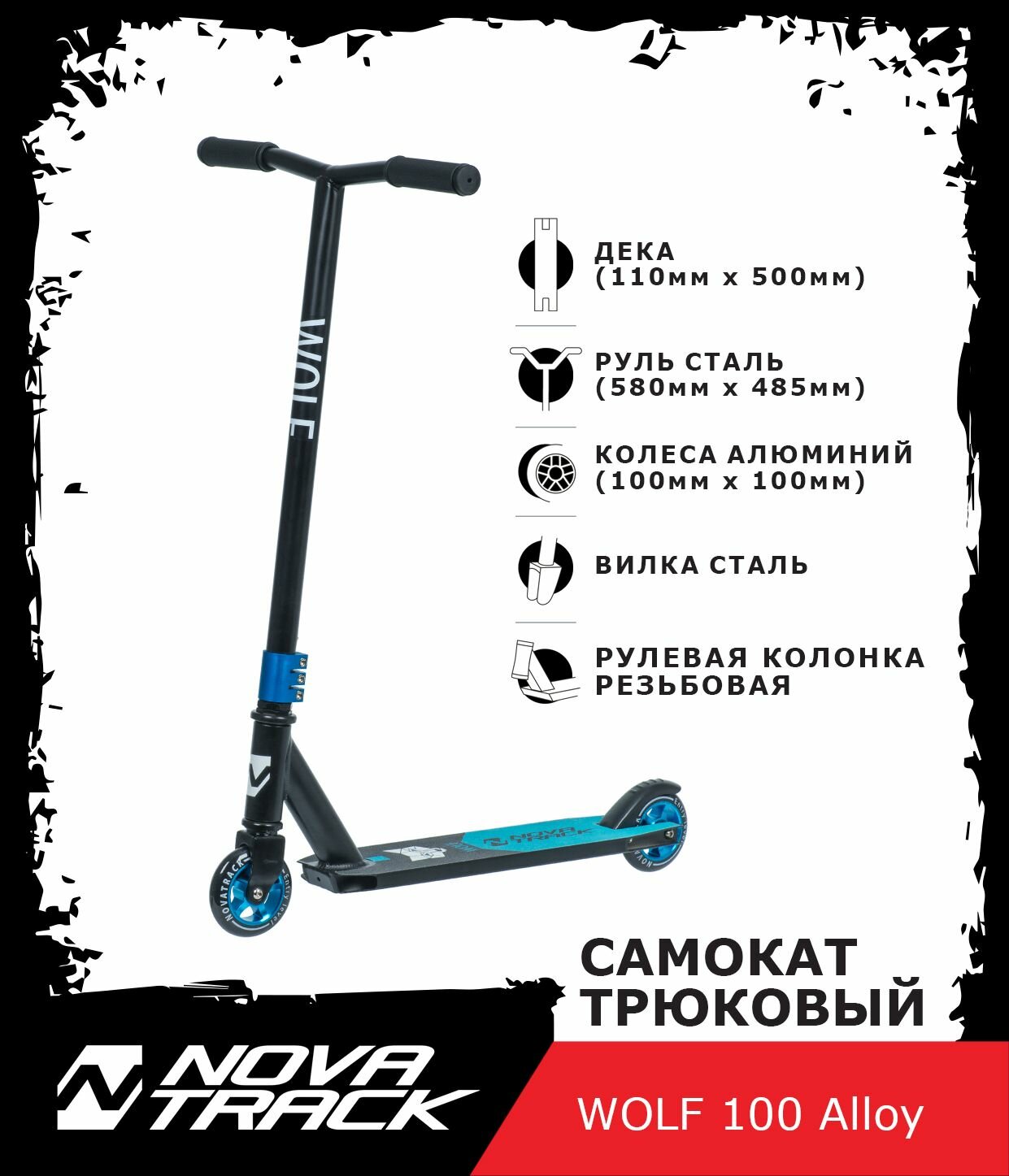 NOVATRACK 100A.WOLF.BBL20 Самокат 2-х колесный 100 мм Трюковый подростковый Wolf алюминиевый не складной 100 кг синий 100A.WOLF.BBL20
