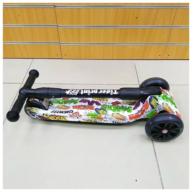 Детский 3-колесный самокат TechTeam Tiger Print 2020, белый интересное: