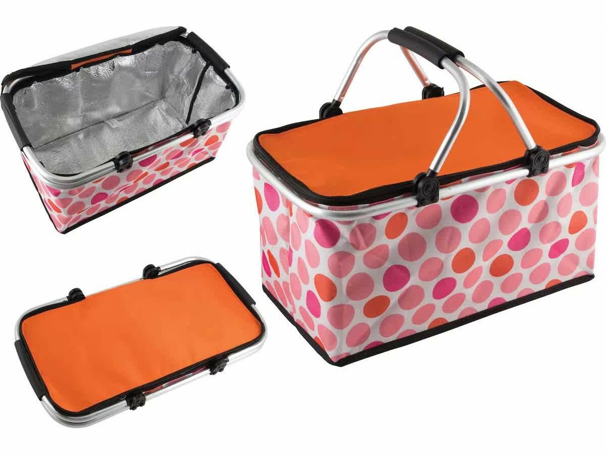 Термосумка складная с алюминиевым каркасом CB-7046-1 с принтом горошек, 48*27*24см,оранжево-розовая ,Ecos