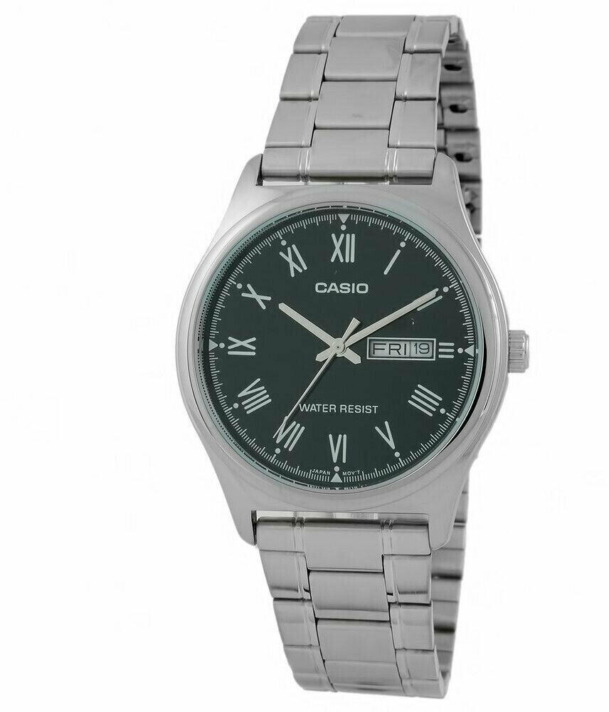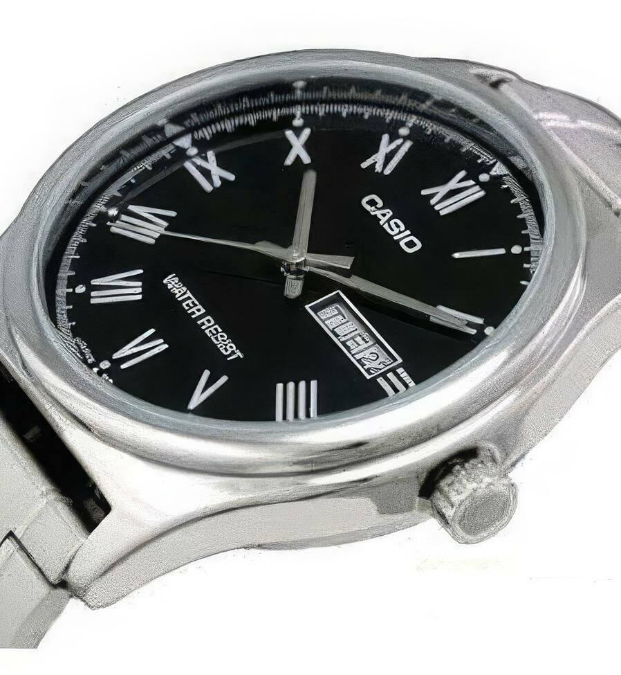 MTP-V006L-7B Casio наручные часы кварцевые WR30 (3 атм) мужские хром, черный отображение числа, отображение дня недели минеральное стекло