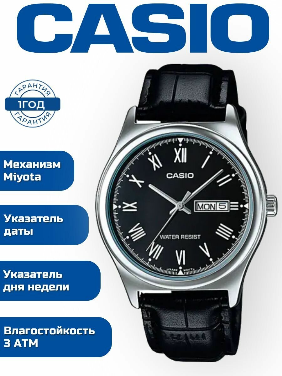 Наручные часы CASIO MTP-V006L-1B, черный, серебряный
