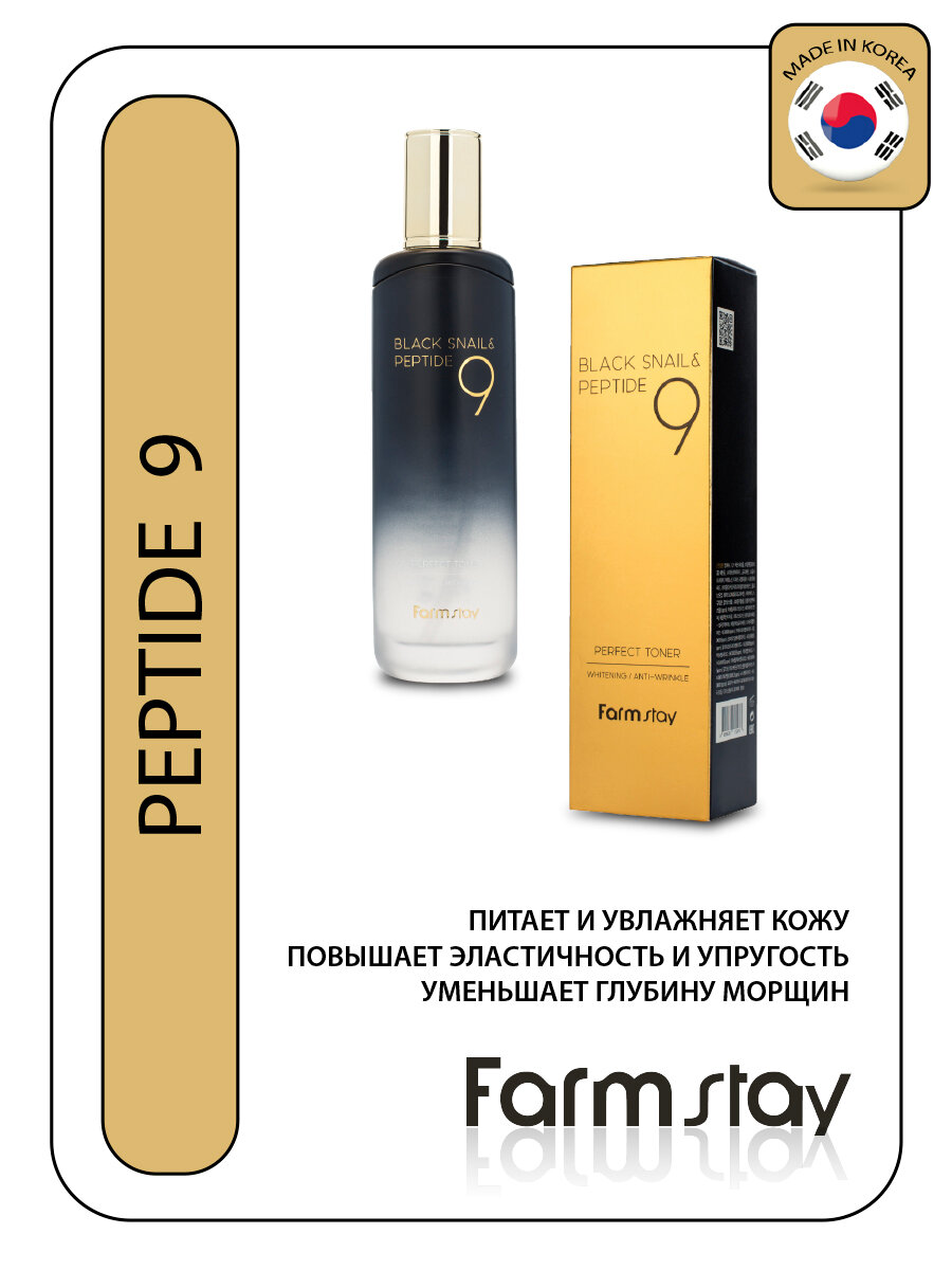 FarmStay Тонер Black Snail & Peptide9 Perfect Toner с комплексом из 9 пептидов, 120 мл.
