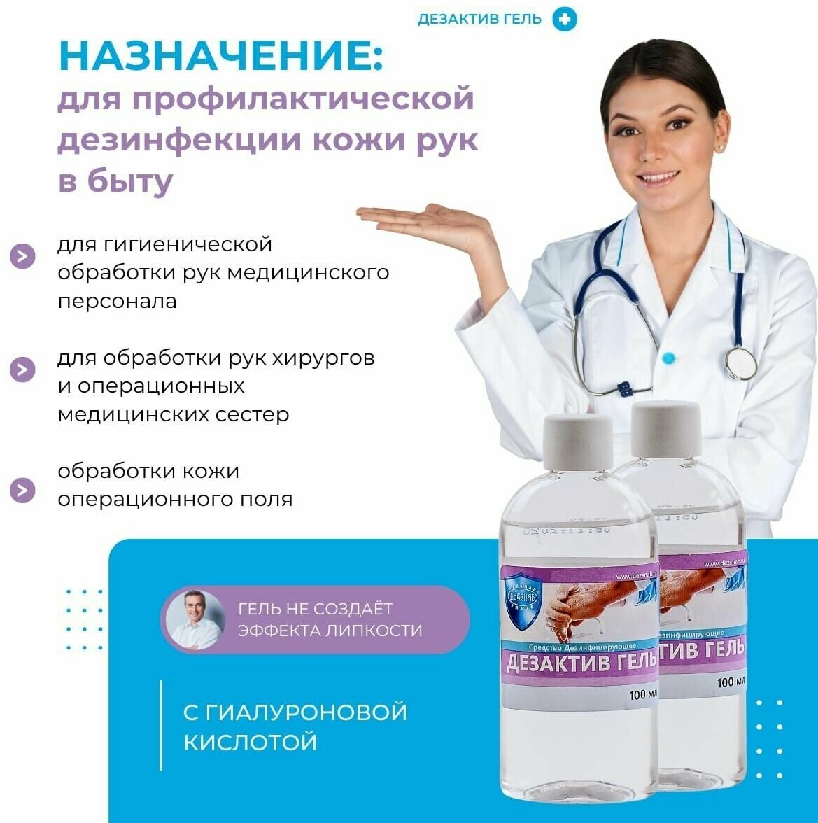 Дезактив-Гель, средство дезинфицирующее для рук с гиалуроновой кислотой, 50 мл