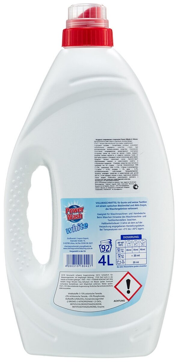 Гель для стирки Power Wash White для белых тканей 4 л интересное: