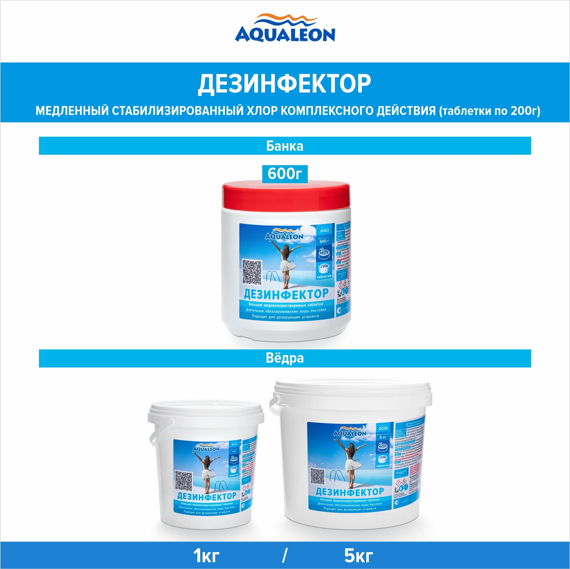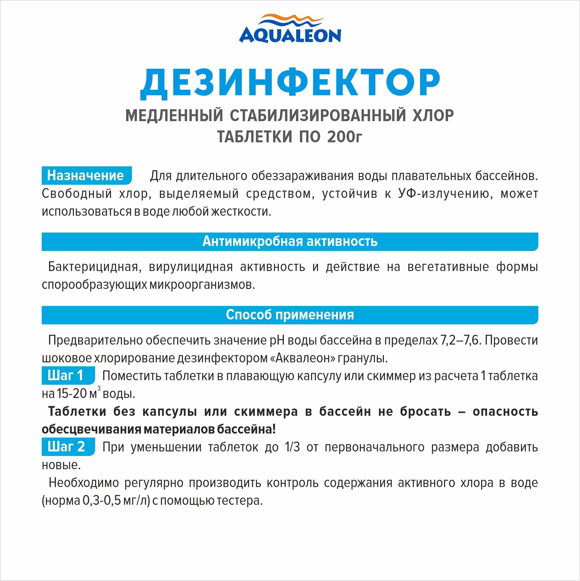 СохранитьДезинфектор медленный хлор Aqualeon в таблетках по 200 гр., 1 кг интересное: