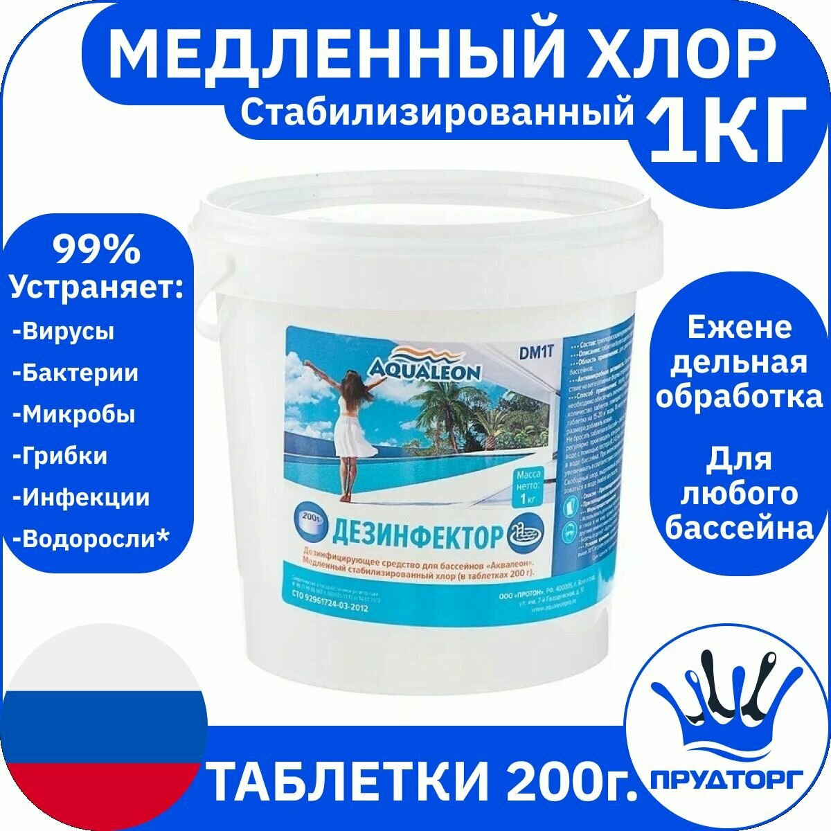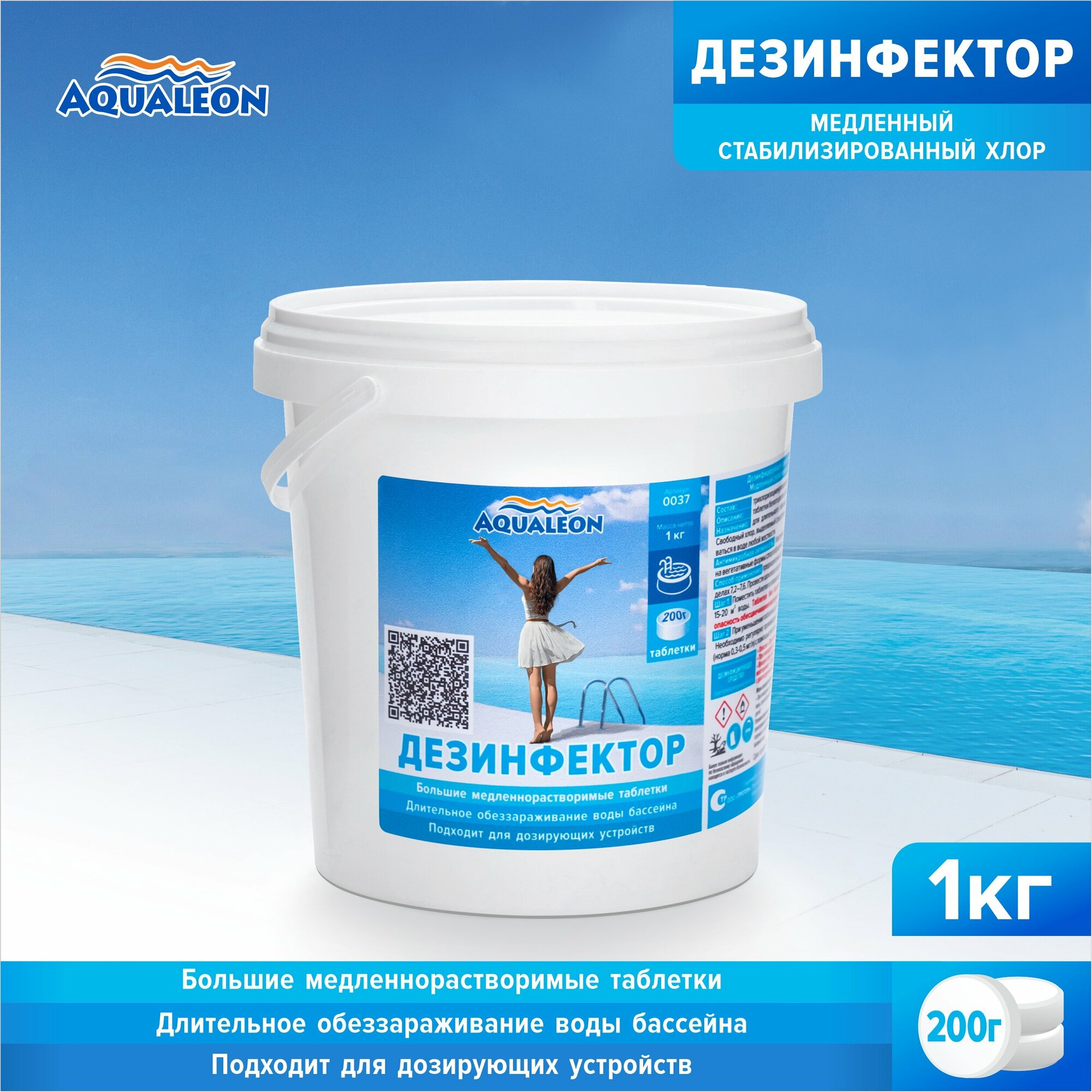 Дезинфектор медленный хлор Aqualeon в таблетках по 200 гр, 1 кг