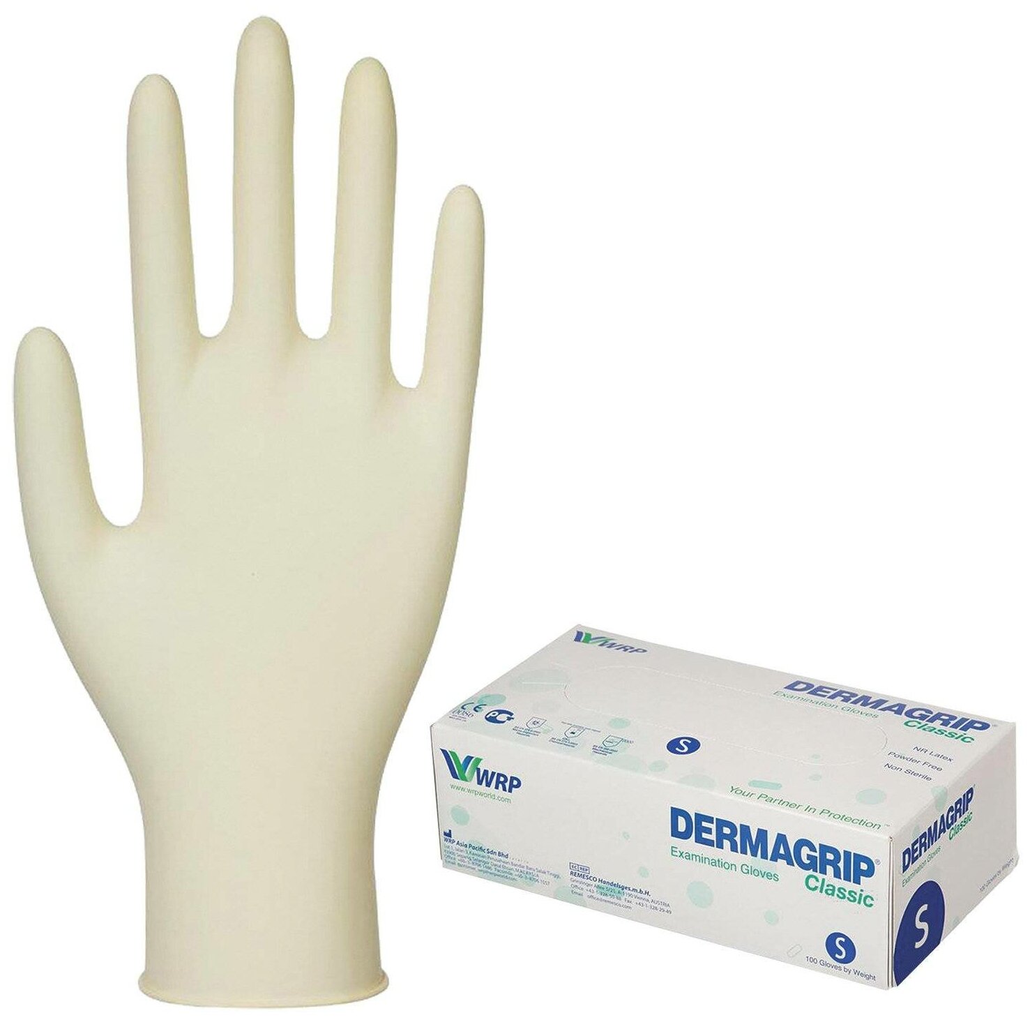 Перчатки латексные смотровые WRP Dermagrip Classic, 50 пар/100 штук, размер: S, цвет: светло-желтый