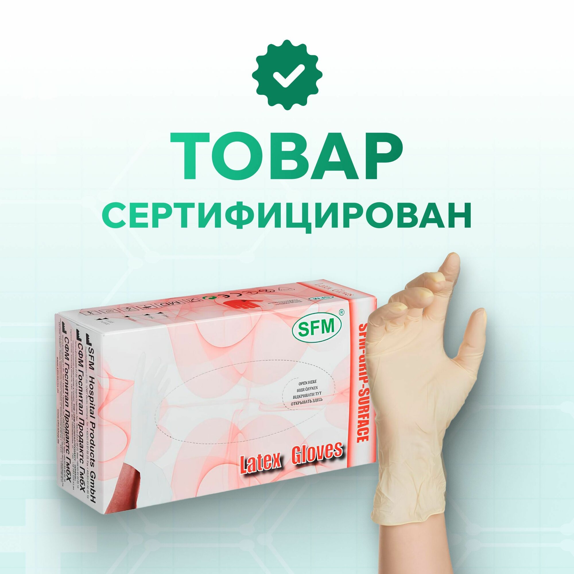 Перчатки смотровые SFM Latex, 50 пар, размер: L, цвет: бежевый