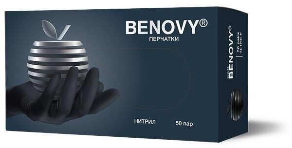 BENOVY Перчатки нитриловые 50 пар, черные, размер M, одноразовые, медицинские
