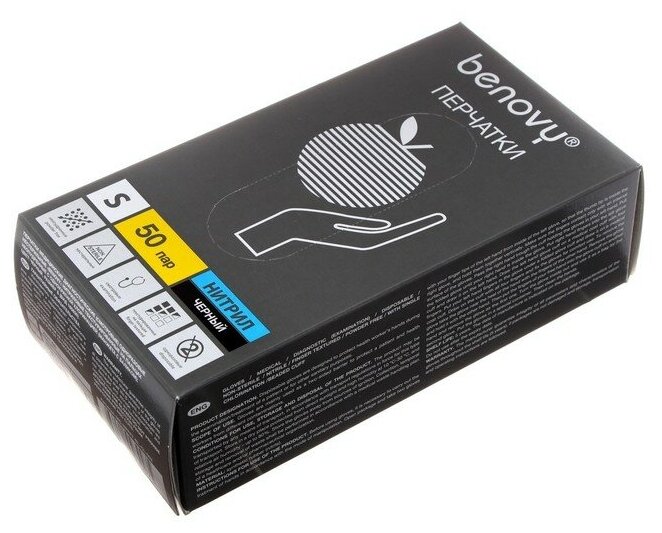 Перчатки черные одноразовые нитриловые размер S (BENOVY)