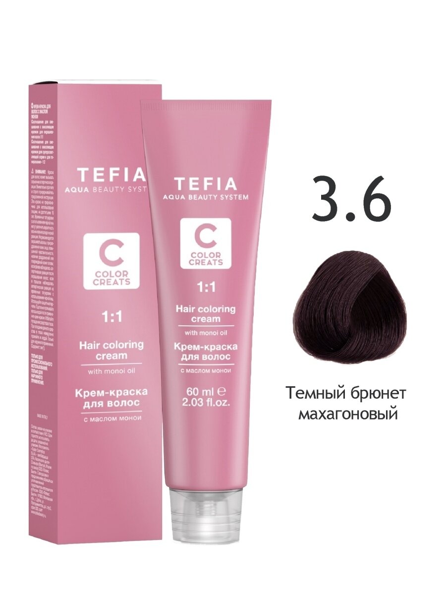 TEFIA ABS Крем-краска для волос с маслом монои, 60 мл 3.6 темный брюнет махагоновый
