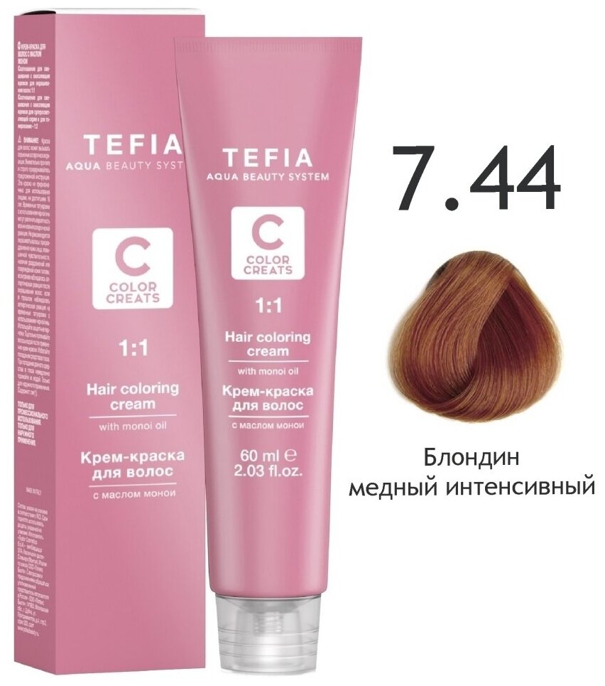 Крем-краска с маслом монои TEFIA Color Creats, 60 мл (7.44 блондин медный интенсивный)