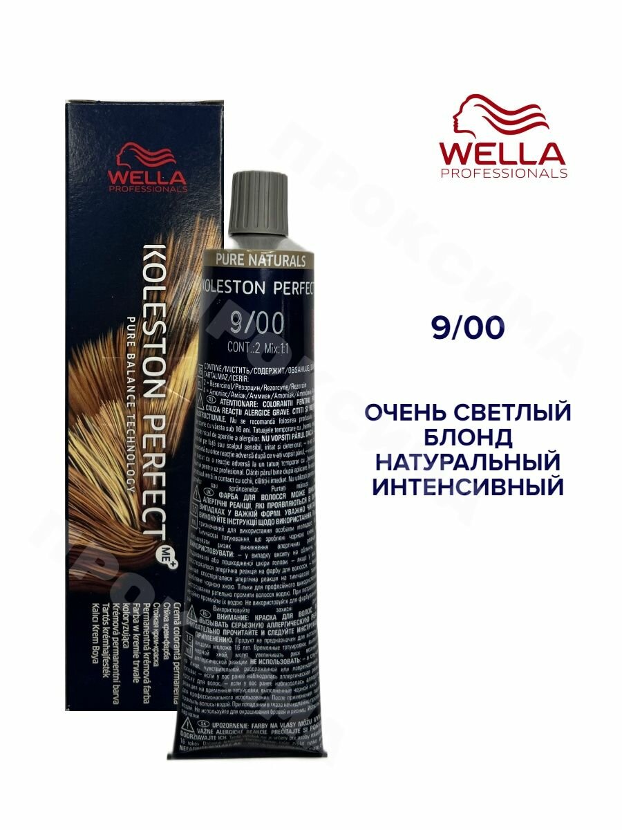 Wella Professionals Koleston Perfect Pure Naturals Краска для волос, 9/00 очень светлый блонд натуральный, 60 мл