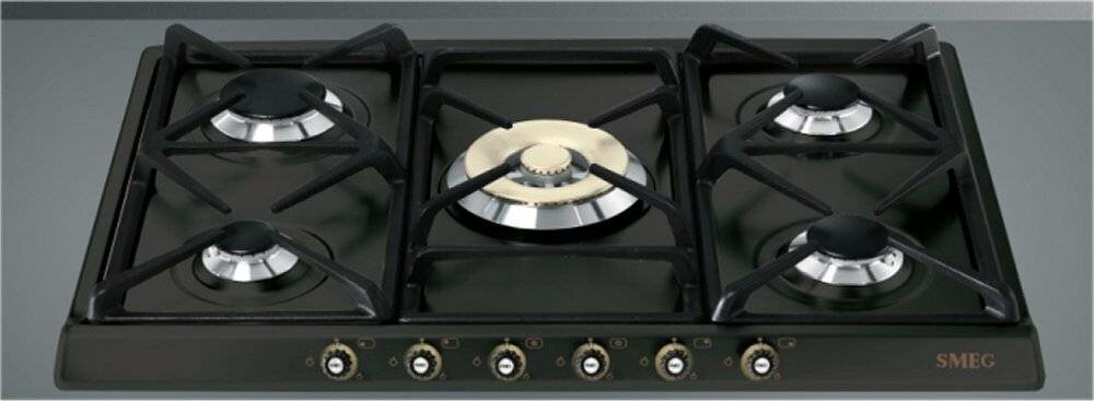Купить Встраиваемые газовые панели SMEG/ Газ, CORTINA,газовая варочная панель, 70 см,антрацит/фурнитура латунь