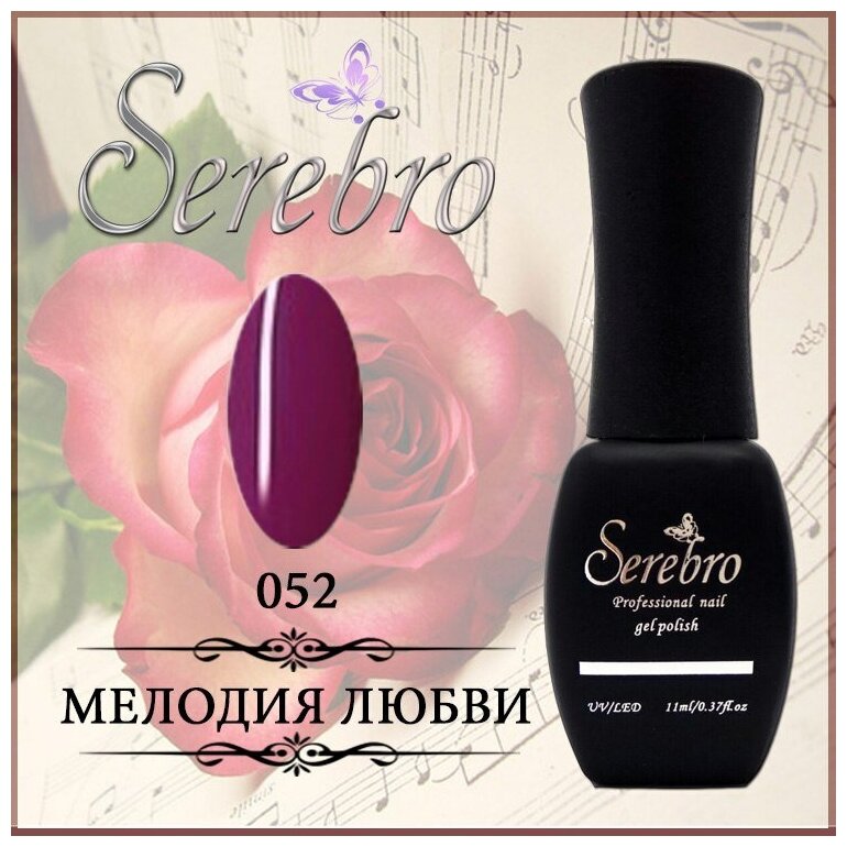 Serebro гель лак для ногтей розовый "Мелодия любви" для маникюра и педикюра №052, 11 мл