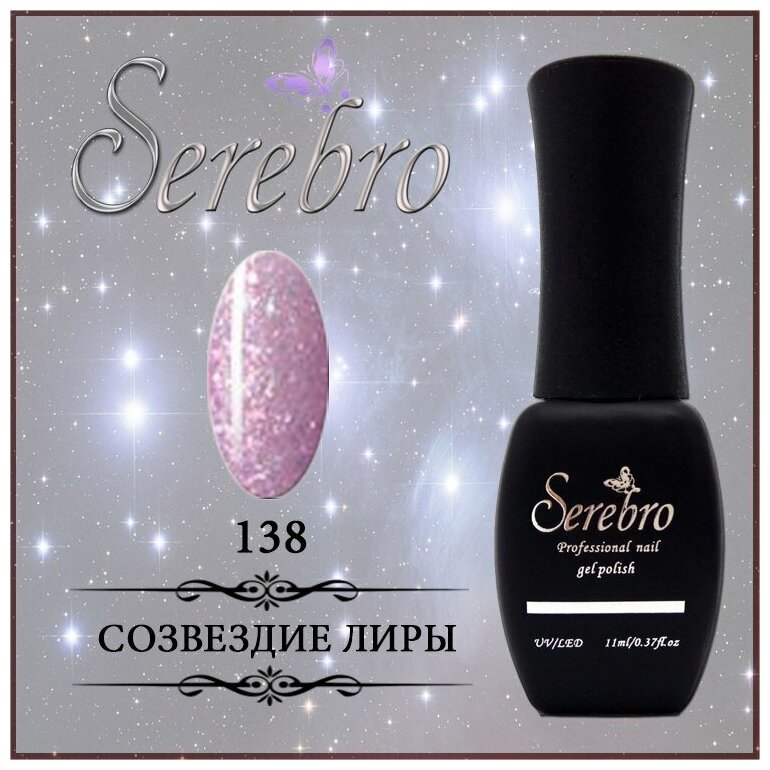 Serebro гель лак для ногтей розовый "Созвездие Лиры" для маникюра и педикюра №138, 11 мл