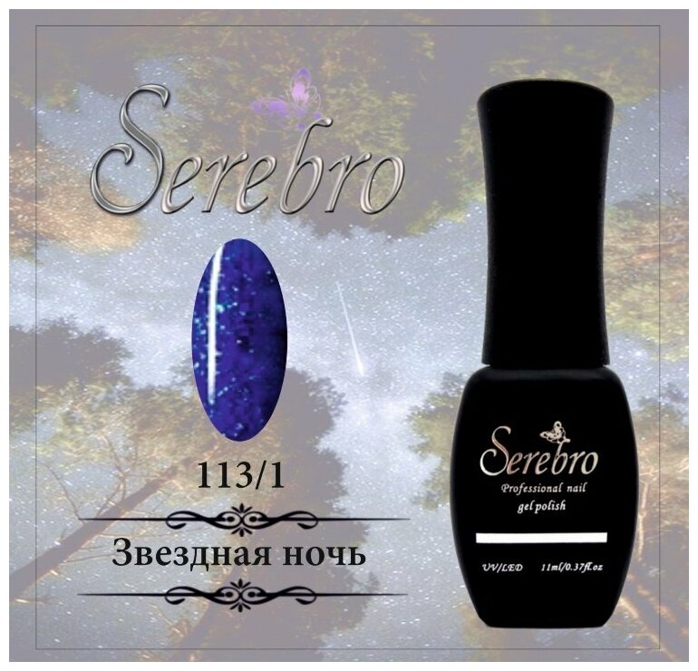 Serebro гель лак для ногтей синий "Звёздная ночь" для маникюра и педикюра №113/1, 11 мл