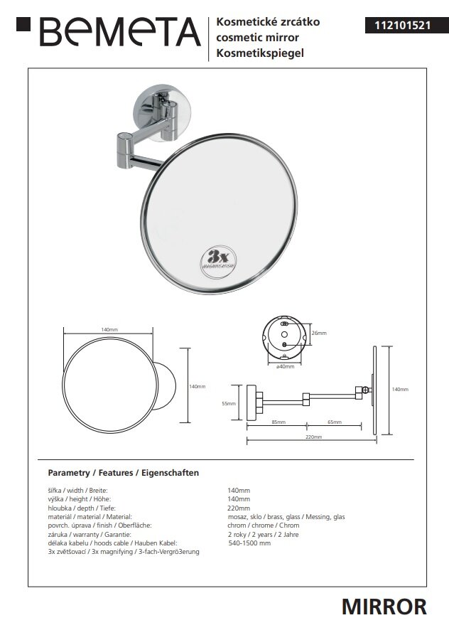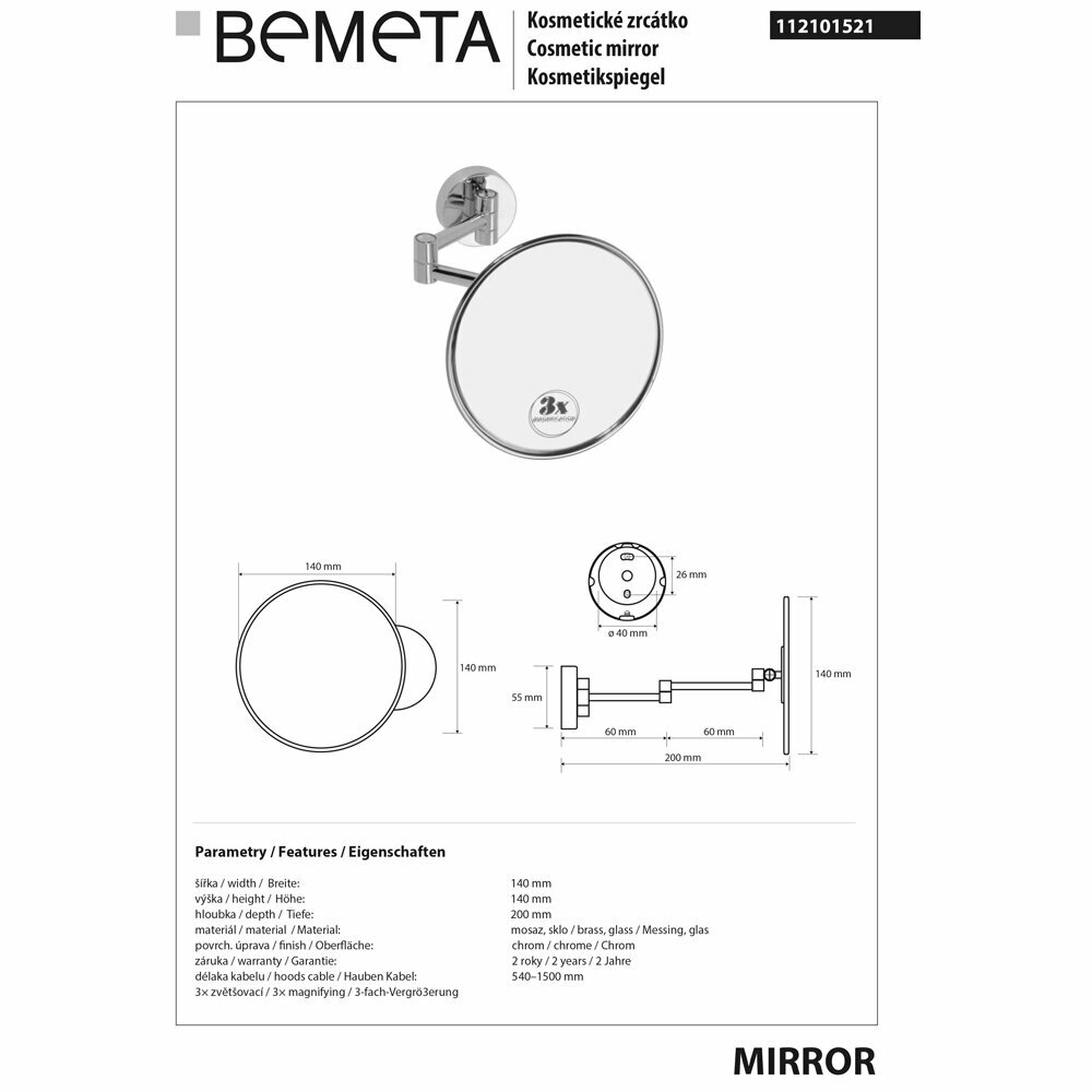 Косметическое зеркало x 3 Bemeta Omega 112101521