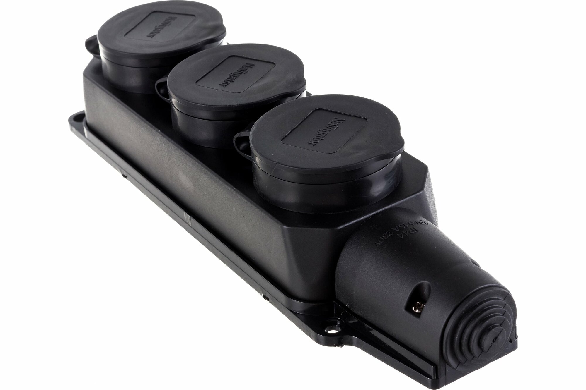Колодка Navigator, NCA-BLR2-03-16A-E-IP44-BL, 3 гнезда, с/з, каучук, черная 61372