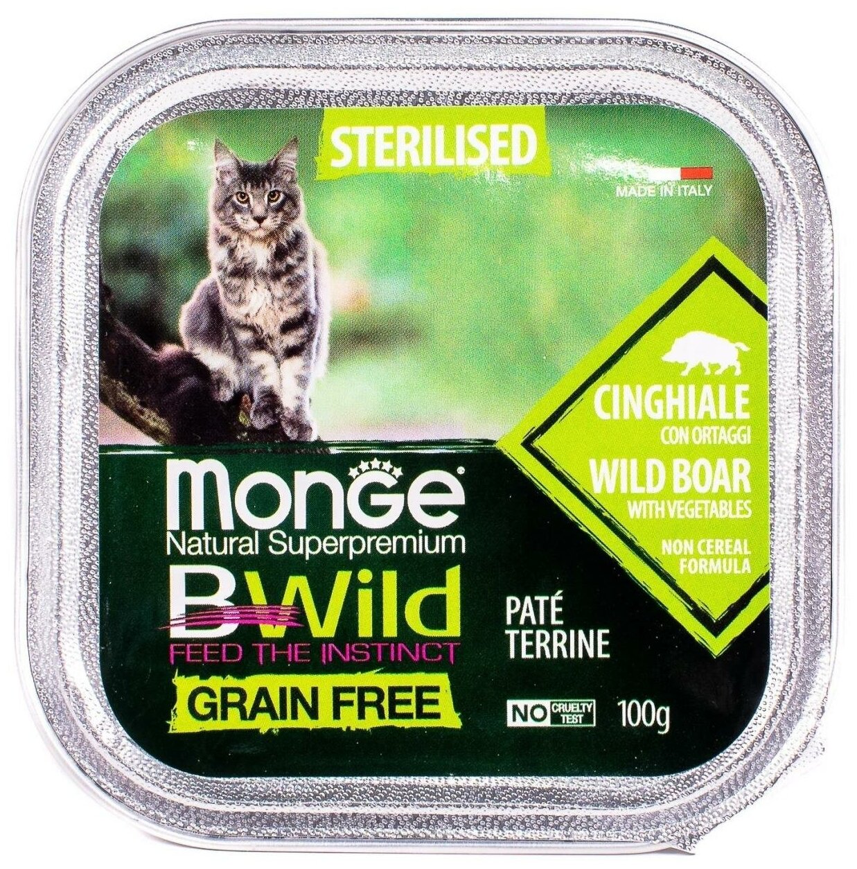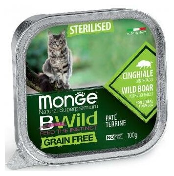 Monge Cat BWild Grain Free Sterilised Wild Boar Pate / Влажный Беззерновой корм Монж для Стерилизованных кошек Паштет из Кабана с овощами (цена за упаковку) 100г х 32шт