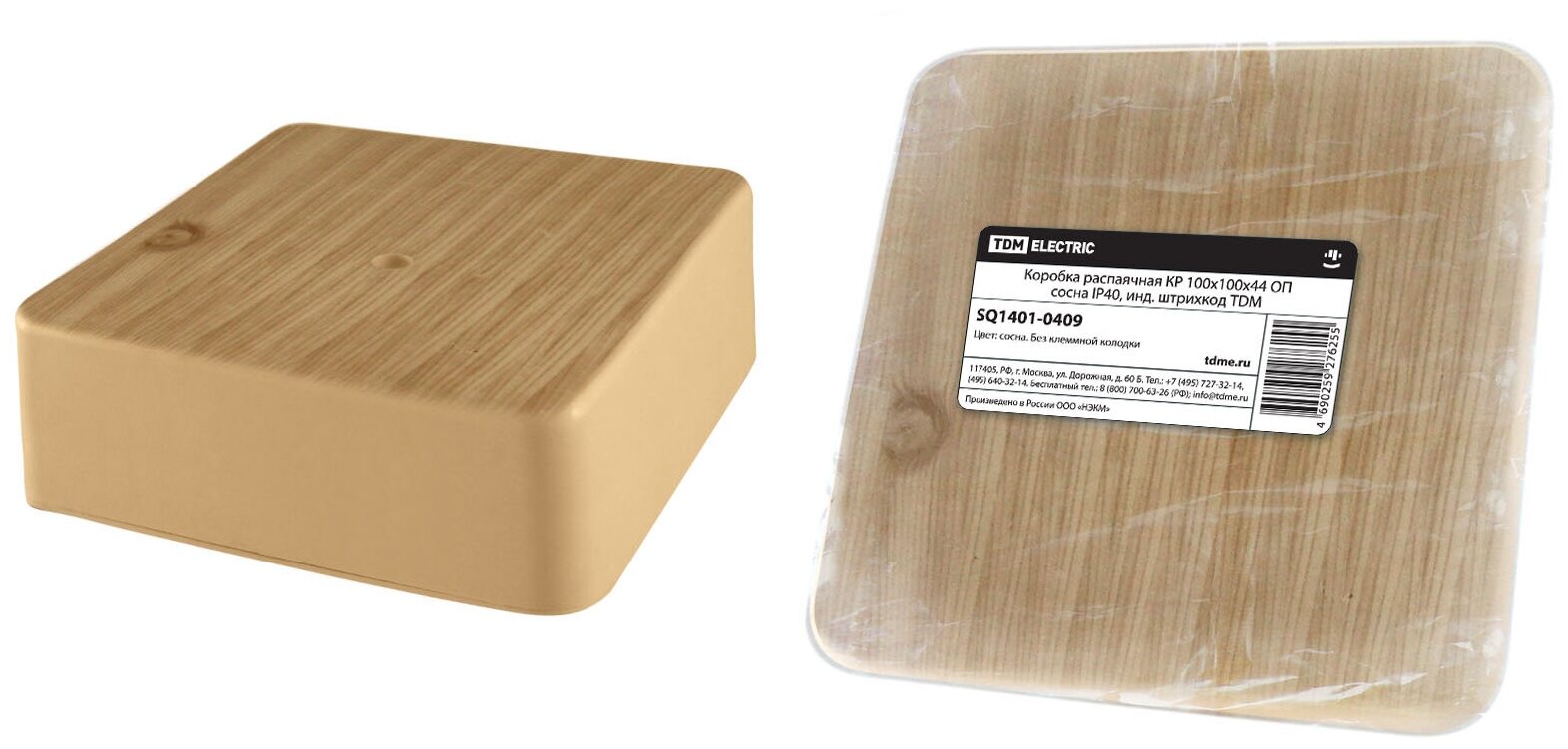 Коробка распаячная КР 100х100х44 ОП сосна IP40, TDM 1 шт {SQ1401-0409}