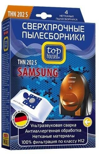 TOP HOUSE THN 202 S Сверхпрочные нетканые пылесборники с антибактериальной обработкой, 4 шт.