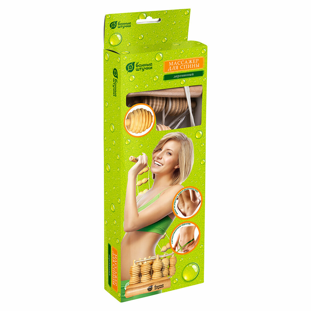 Массажёр деревянный ленточный для спины Банные Штучки 40071