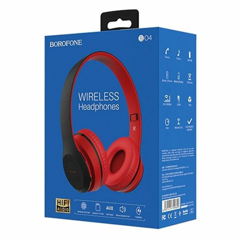 Беспроводные наушники Borofone BO4, mini jack 3.5 mm, red