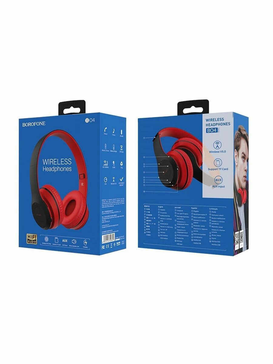 Стереонаушники Bluetooth полноразмерные Borofone BO4 BT5.0/200mAh/5ч красные