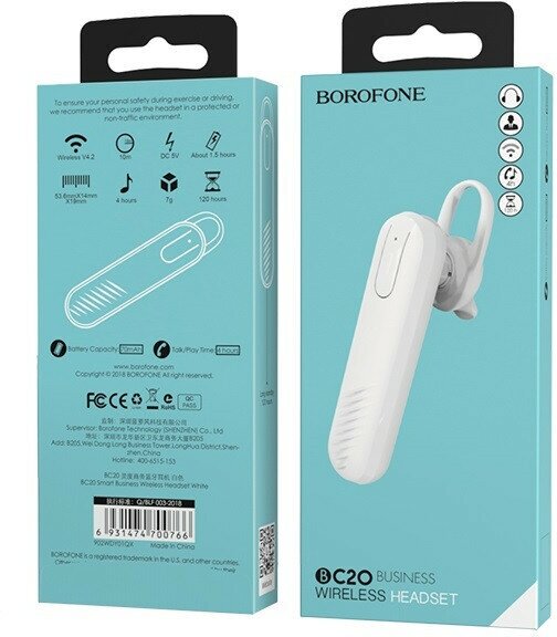 Беспроводная моногарнитура BOROFONE BC20 Smart, цвет белый